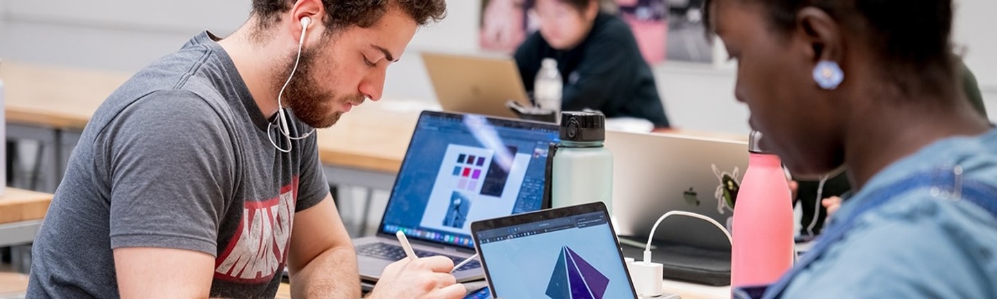WashU encourages a broad approach to communication design, but all students start with a foundation in drawing and design studios. Beginning sophomore year, you begin exploring image-making for graphic design, type, letterform, and more. You can learn how to design interfaces for mobile and web, create motion graphics and animations, illustrate stories and comics, design for public health initiatives, and develop interactive VR and AR experiences.