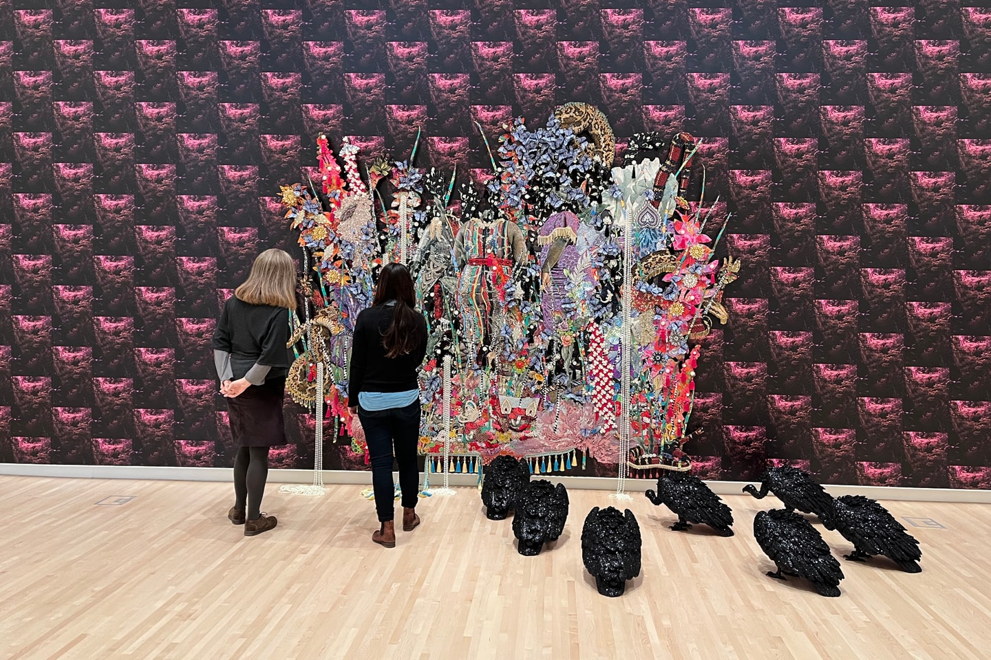 Join Kemper Art Museum student educator Jay Buchanan, PhD student in the Department of Art History & Archaeology in Arts & Sciences, for a half hour of slow looking and conversation focused on the new mixed-media installation …in the waiting…in the weighting… (2021) by Ebony G. Patterson (MFA-VA ‘06).