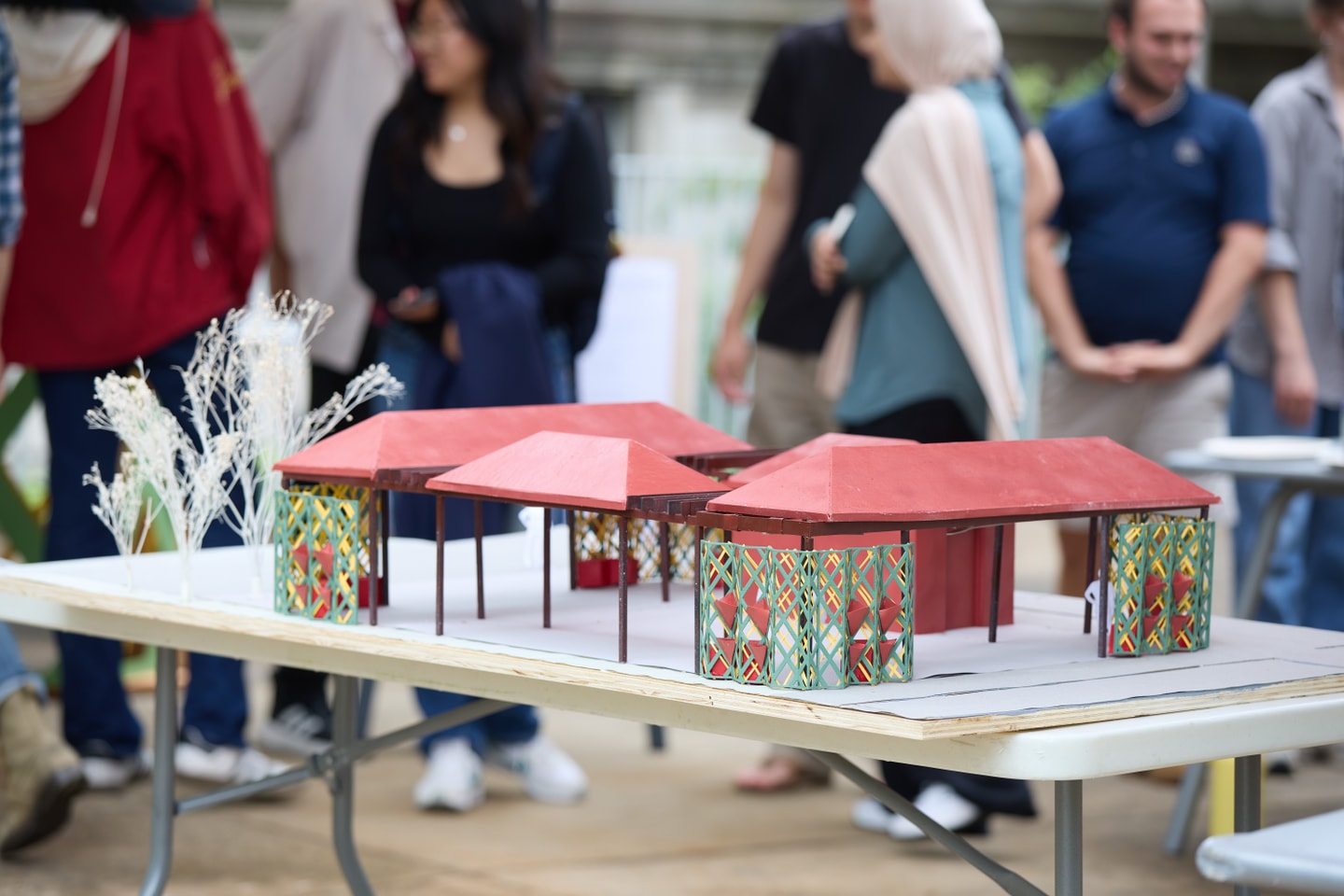 Muhammad established a farmers market across from the café in 2020 and has been working toward her vision of a permanent pavilion ever since. Students who participated in the workshop designed, prototyped, and fabricated custom metal screens that will enclose the pavilion. When completed, the screens will provide both security and an expressive visual identity for the market.