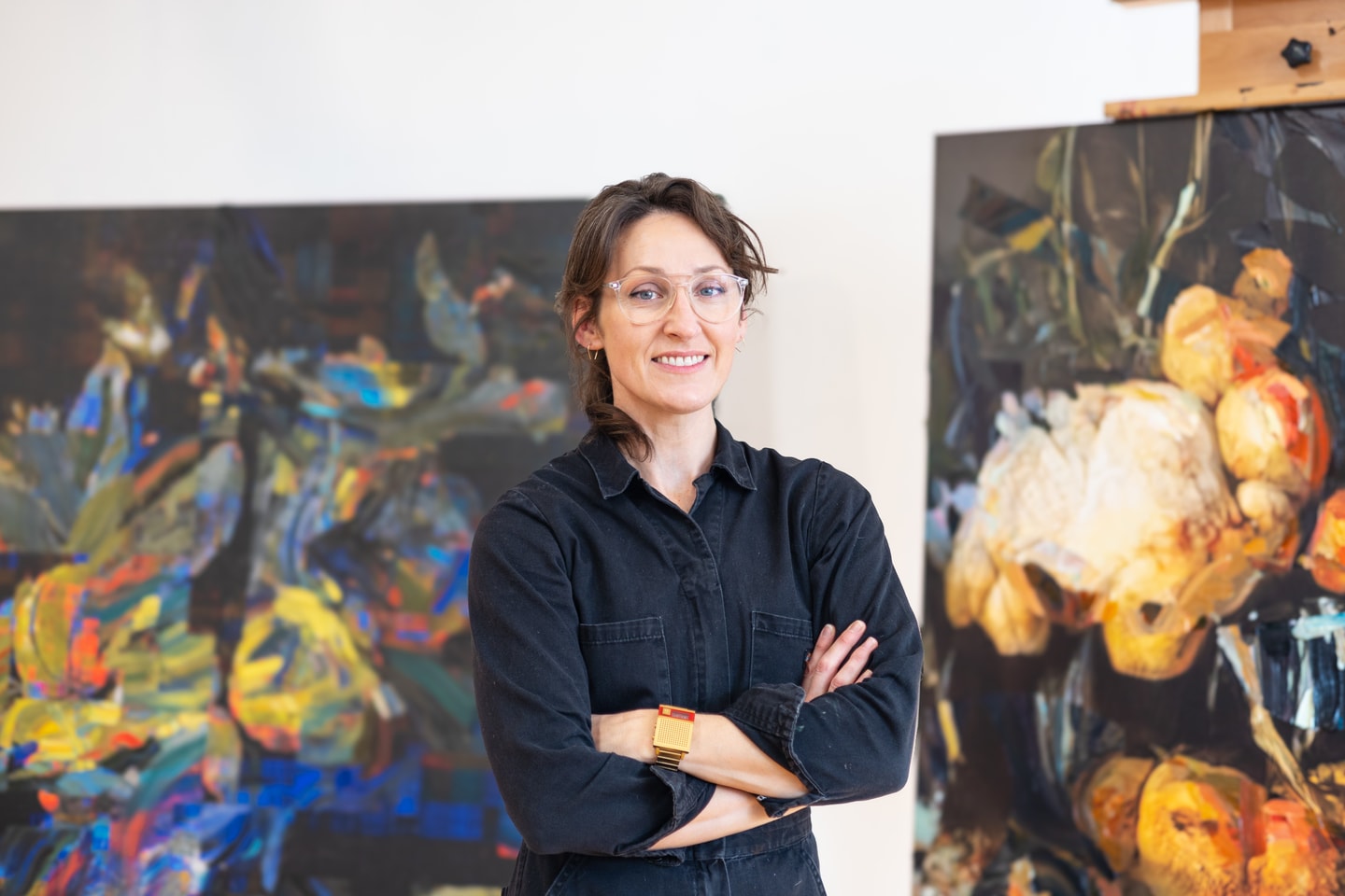 Artist Tiffany Calvert is busy wrapping up a day in her studio, putting the finishing touches on a largescale still life oil painting. In 2025, it might seem like an anachronism, something from another century. The catch: the image was created in part by a custom AI diffusion model.