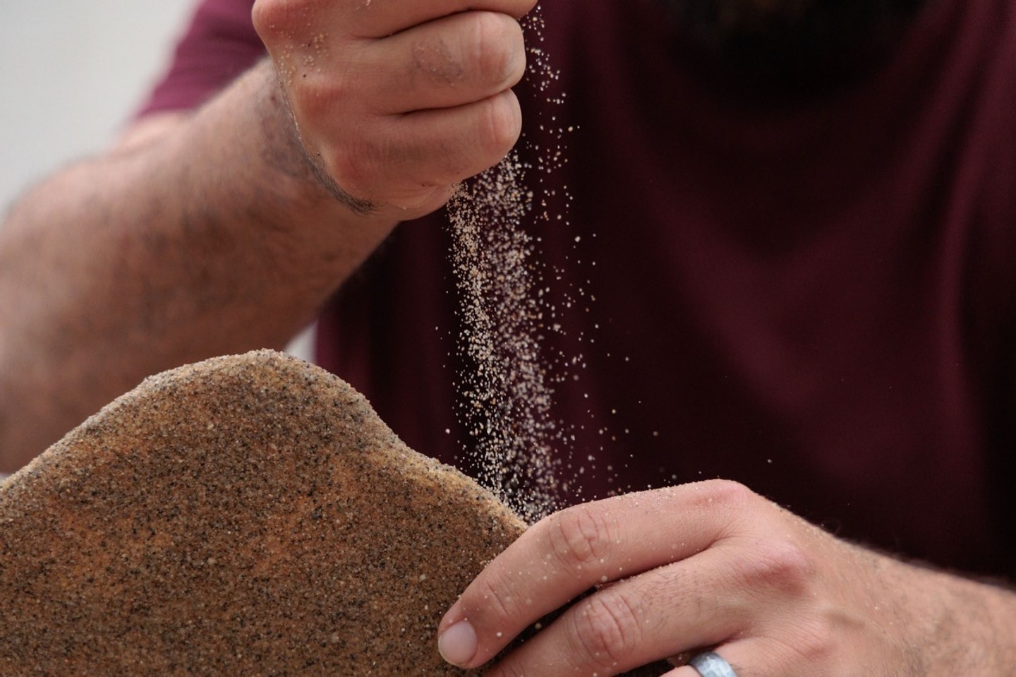 I call the sculptures “sandstones.” In the past I’ve used Styrofoam as a base, but in this iteration, I used wood. That material was not only more eco-friendly but also allowed me to push myself further in terms of what I can do or make. Wood can be shaped into slimmer structures that will still hold weight in a way Styrofoam can’t.