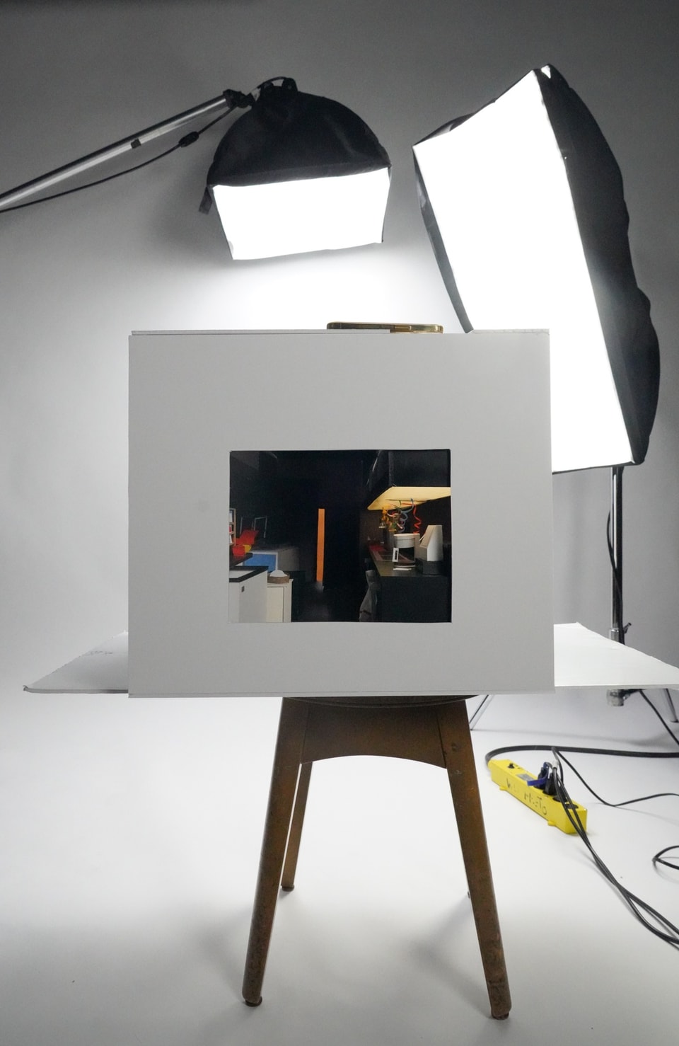 For the charrette, students explored Demand’s style forwards and backwards. Beginning with a photo of a room, they first built a diorama of the photo. Once complete, they photographed the diorama. McIntosh and Louie suggested displaying the three parts of the work side-by-side, so that “the more you look, the more you see…they are models for observing and studying new ways of seeing the room.”